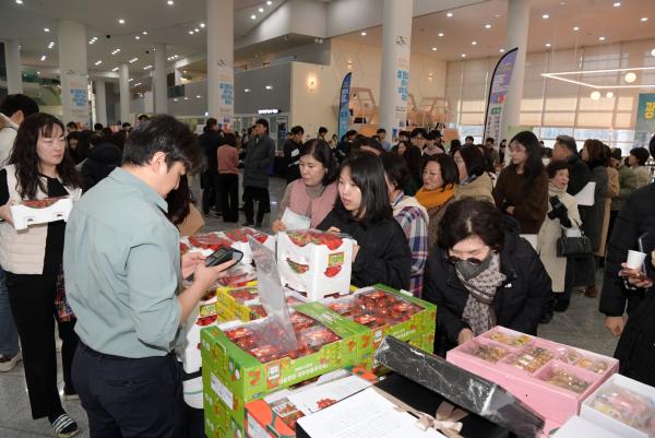 광주광역시(시장 강기정)는 설 명절을 앞두고 9일 시청 1층 시민홀에서 ‘광주·전남 행정통합을 위한 설맞이 농특산물 직거래장터’를 열었다.